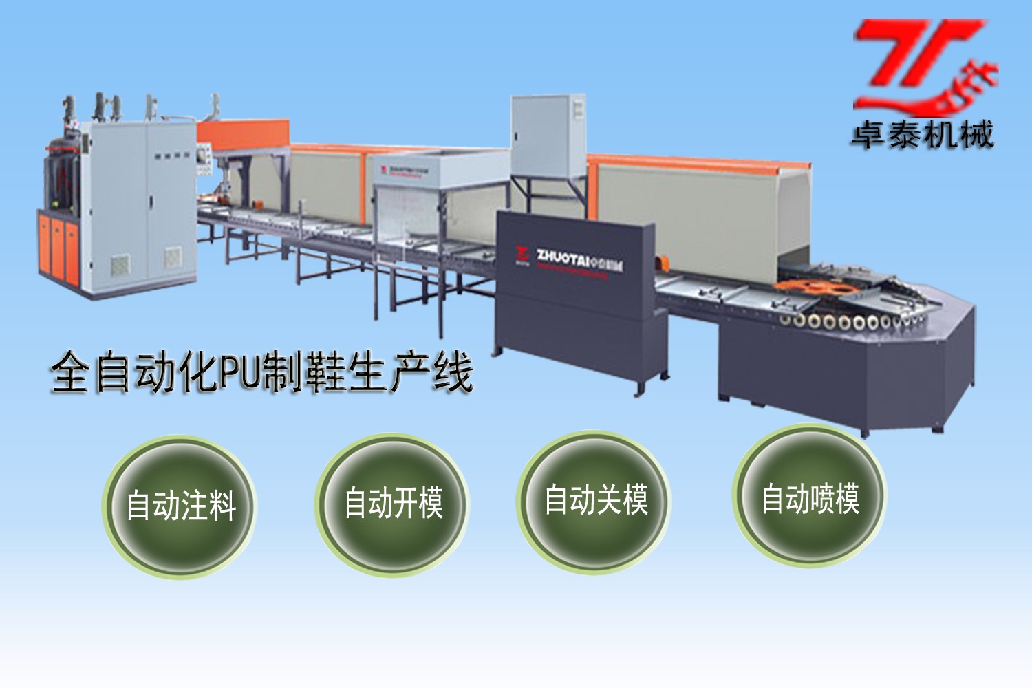 溫州卓泰機(jī)械制造有限公司系一家集研發(fā)、生產(chǎn)和銷售于一體的聚氨酯設(shè)備制造企業(yè)。經(jīng)過多年的發(fā)展,我司研究、開發(fā)了多種品牌的系列聚氨酯澆注設(shè)備。主要涵蓋聚氨酯鞋底澆注機(jī)及生產(chǎn)流水線、自動(dòng)化PU連邦注塑鞋成套設(shè)備、高低壓發(fā)泡機(jī)、高中低溫彈性體澆注機(jī)、PU鞋墊機(jī)、PU鞋底機(jī)、PU鞋機(jī)、全自動(dòng)數(shù)控聚氨酯密封條澆注機(jī)、發(fā)泡圓盤生產(chǎn)線及模架等系列。